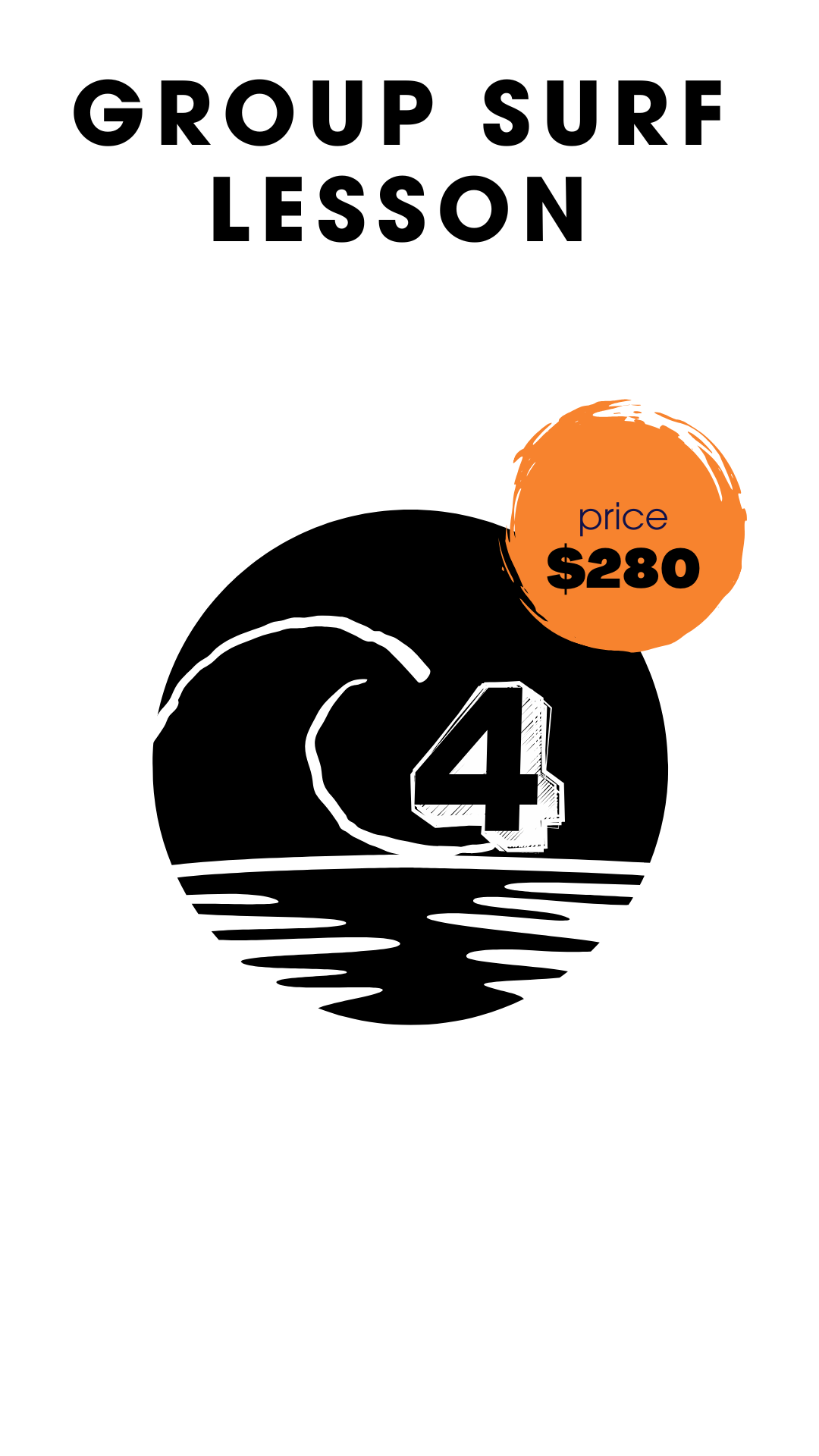 Pre lesson 15min includes equipment fitting, questions and getting acquainted. Lesson includes 60min of instruction on land and in ocean safety, technique & wave riding.